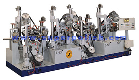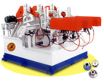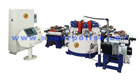 Designed for automatic buffing operaions on pan bottoms and side surfaces. Workpiece bottom and side are ground simultaneously. The operator only need to load and unload workpiece.