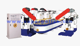 Especially designed for polishing outer face of cookware. The machine is able to adjust the angle of polishing according to The shape and size of the cookware Vacuum plate instrument cups on the machine allows easy loading & unloading of working pieces. Automatic supply function is available when the cloth wheel wear out. Auto spray liquid equipment makes the operation easier. Each post is equipped with two polishing wheels for increasing efficiency.