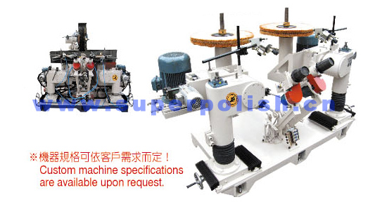 suitable for irregular shapes of hardware working pieces. The column with buffing heads and two working tables,The mould can be designed according to the size of work piece. The machine is specially designed for the demand of small quantities of different types of working pieces.