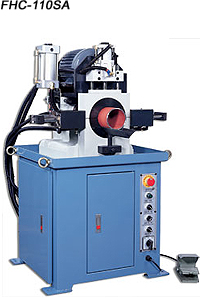 Designed and engineered for chamfering and trimming inner and outer end angles on circular pipe or bar stock at one time, providing efficient and precise performance. Delicate clamping vise and cutter head ensure high concentricity of results. Specially designed cutter head and standardized cutter make cutter adjustment easy. Motion cycle includes automatic material infeed through a channel (automatic feeder is optional). Automatic cutting feeding/retracting and automatic workpiece outfeed. Continuous motion cycles provide high machining speed, high accuracy, reduced labor requirement wh
