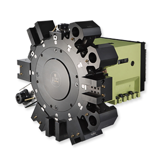 Features: High performance turret with AC servo drive Single motor technology for indexing and tool drive Overload clutch to limit damage during collision Heavy duty turret housing Extended neck for back turning tools Position of face coupling very close to the tool disc No reduction in capability when back turning Hydraulic or pneumatic locking system Ultra high-speed indexing For high-volume production