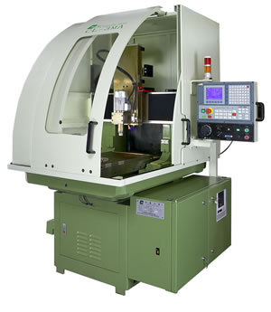 Utilized for 3D, 2D, cylindrical, 5 axis, and concave/convex graph and lettering engraving, as well as for diverse kinds of engraving via projection on curved surfaces. ¡@ High-rigidity structure allows high-speed, high-precision processing. ¡@ Multipurpose CAD/CAM program, with the help of a scanner, allows for multi-spindle machining. Designed for developing small-sized precision molds, such as molds for synchronal plaques, nameplates, watches, clocks, gold jewels, electrodes, pen-sleeves, zippers, etc.