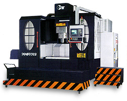 Specially designed T shape machine strudture features superior rigidity. The width of column is the same as the base. The table is independently installed on base, and fully supported through the entire stoke, assuring maximum accuracy and dependability. Long term accuracy at high speed machining is assured. All castings are stress relieved and seasoning treated for long term accuracy and long service life. Roller type linear guideways on three axes feature higher feedrate, resist heavier loads, ensure superior dynamic accuracy and a long service life. Y axis is driven by double ball screw