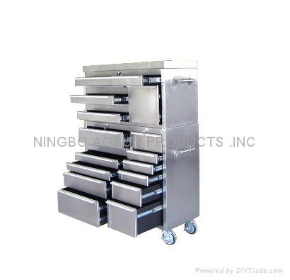 Model NO.:G604B Description:Stainless Steel toolbox with 4 drawers.Brushed 430 stainless steel material; Anti-slide mat for each drawer; 1 long handles for easy moving; 1 locking system for all drawers; 4 wheels for selection, two with casters; Reinforced contruction for the double wall side panels and top deck; Heavy duty full extension drawer slides; Drawer bumpers for each drawer; Constructed using precision laser cutting and seamless welding; Innovated drawer handle design