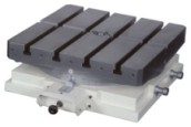 The 'HOMGE' PRECISION INDEXING TABLES are constructed with an AIR CYLINDER between the mating surfaces. This system reduce friction and even when heavy loads are applied to the table. It ensures that manual rotation is almost effortless. This system also ensures that the highest accuracy and repeatability are achieved. Rotation is very quick, taking less than 3 seconds to reposition the table. HEAVY DUTY CONSTRUCTION built of FC35 CAST IRON suitable for heavy cutting.