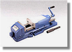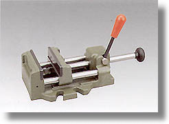 Ideal for uses on drill press and other machine tools. A simple push or pll on the center bar knob sets the jaw in position. Recessed jaw plates hold the workpiece on level. An easy press on the locking lever sends the jaw ahead to clamp the workpiece firmly.