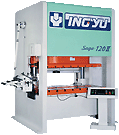 An ultra rigid H frame structure reduces deflection to less than 1 mm. Patented 9-linkage mechanism maintains a unique 44 ¢X stoppage of slide at B.D.C., enabling precision cold forming e.g. coining & sizing processes. Improved knuckle driving mechanism that never moves to full perpendicular position and eliminates die sticking near B.D.C. Very rigid slide and bed creating very low deflection which is less than 1/33000''.
