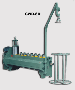 The oustanding feature of this dipping type continuous wire drawing machine is that the drums and the dies are dipped in soap water, for better cooling and lubricating.