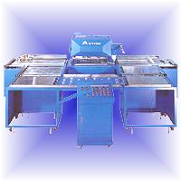 Skin packaging machine heating and vacuuming plastic film onto printed cardboard within a few seconds. It makes film to stick onto cardboard and fasten the products.