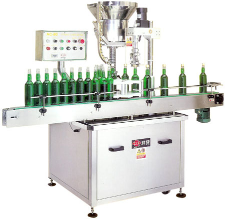 Automatic cap sealing Is designed for those bottle mouths to be sealed with aluminum cap and/or spiral-type cap. It is also possible for sealing with plastic screw cap and the sealing requirements can be adjusted according to the materials of the cap. A safety equipment is attached to this machine, which will automatically stop its operating in case of any fell down of battle, Improper positioning of the bottle to be capped, or of the manual opoeration is ntruded. The soft device permits to reduce the fr ction loss of machines, thus to prolong the service life of th s machine. When specif