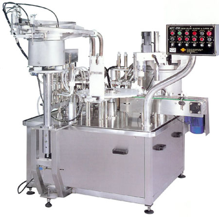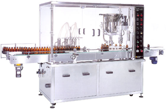 Compact combination set of liquid filling & capping machines, providing labor savings (only one operatuor) & low requirement. Accurate volumetric filling designed by cylindrical pistons. Easy to adjust the filling volume. Filling nozzles move upwards from bottom of bottle gradually,to prevent foam-making. Suitable for wide range liquid characteristic even high viscosity. Suitable for high temperature liquid. Automatic stop dervice for no bottles or caps. Conveyor speed adjusted by invertor. Automatic caps feeding design. Friction clutch can be adjusted to exact torque requi