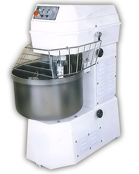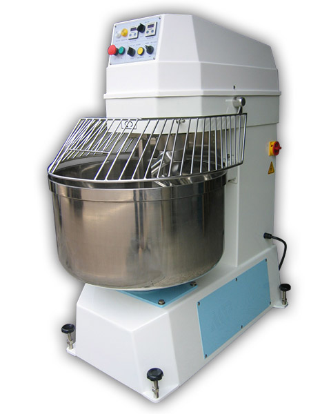 1. The spiral mixer is quality constructed for elegant appearance. It provides high speed mixing that saving 1/3 time more than the conventional vertical mixer. 2. The unit is equipped with stainless steel net guard to prevent injury for the operator. A power cut-off safety device ensures added safety for operation. 3. The machine can be operated at low, high speed and fully automatic operation mode through two timers control. 4. Employees European imported automatic control components. 5. It features automatic power off in the event of overload to avoid damage on the