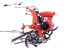 ĄD Powered by reputed air-cooled, 4-stroke OHV, horizontal shaft engine manufactured by Mitsubishi Heavy Industries, Ltd., Japan. ĄD Most suitable for vegetable garden, tea plantation, nursery, sugar cane plantation, maize field, tobacco field, orchard, bean garden and other special crops. ĄD Capable of tilling, weeding, ditching, and manuring operations. ĄD Dexteritable and safe, minimize damage to equipment and crops. ĄD High-power output, easy maneuver among small trees, narrow passages and rocky land. ĄD Shiftable. ĄD Changeable Tilling width, from 30 to 90 cm, depending on the r