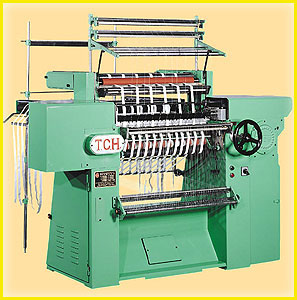TCH-1700C is a microcomputer-processed, multi-functional automatic knitting machine. It can manufacture upholstery fabrics for curtain, decoration, lace, clothes and tablecloth ...etc. Smooth movement for weft bar can be easy for weft tube arrangement The pattern can be saved into disk,and it is easy to conserve and manage. Operator can design and modify the pattern on the machine. The maximum application voume of pattern is 9000 pieces,and it can also be running with partial cycle. The actual number of chain can be revealed operation As it is driven linearly on transmission,long-distanc