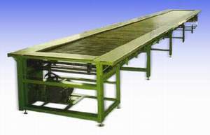 This conveyor, with stainless slat, can resist high temperature. It is often used in vulcanization and modeling of footwear.