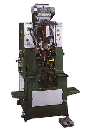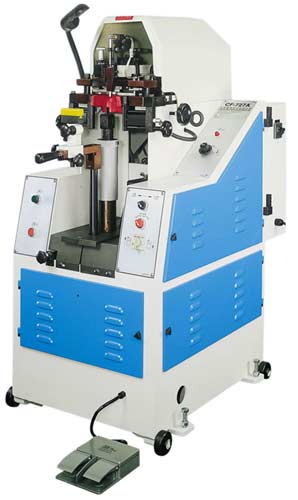 OUTSTANDING FEATURES: Hydraulic tacking, giving stable and perfect tacking results. Motor-driven tacking position adjustment, offering quick change on shoe sizes. Effective tack-blocking devices on all tack channels. Removable wiper ends, adaptable to different shoe styles and sizes. Flexible tacking quantity selection, up to 21 tacks. Unique tack-supplying mechanism, lowering possibility of tack jam. 3-section tack container, making it possible to use tacks with 2 different lengths. Equipped with error warning indicator, reducing repair down time. Hydraulic-actuated machine, red