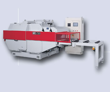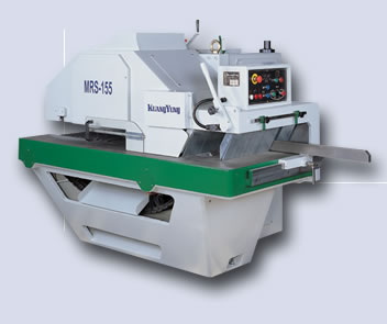 Extra Robust 100 HP motor Great Cutting Thickness of 155 mm (6.1") Continuous duty 100 HP arbor motor allows deep cutting speeds of thick lumber MRS-155 has a massive cast iron base, composing the majority of total machine weight of 2700kg. This design provides incredible absorption characteristics under deep cutting, especially while performing thick lumber ripping with a multi-blade set up. Precision chain and rails (dip chain) system facilitates accurate cutting operations.