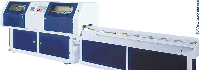 Double sawblades cut simultaneously providing 2/3 time saving than conventional cutting. 2. Four sides clamping by air cylinders assures secure clamping, deformation free and accurate angle of cut. 3. Four lubrication nozzles gives outstanding lubrication performance. Lubricant flushes only when cutting is performing for extending service life of sawblade.