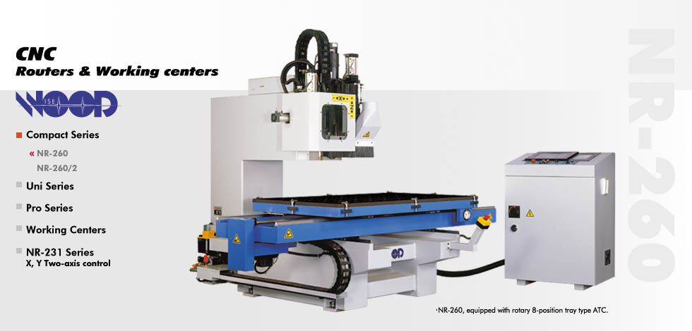 Model NR-231L/3 Dimension of working table mm 900x1500 X-axis travel mm 1500 Y-axis travel mm 900 Pueumatic movement of head mm 120 Vertical adjustment of table Vertical adjustment of head mm 75 Spindle speed rpm 1200~18000 Spindle motor hp 7.5 Max.positioning speed m/min 36 Overall dimensions mm 2310x2305x1697 Packing dimensions mm 2450x2240x1950 Net weight kg 1800