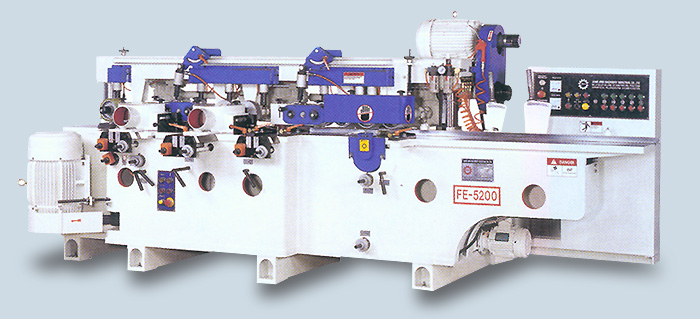 * The machine employs two vertical spindles to perform multiple slicing operations. Workpieces, after cut, are then fed through guide slots ensuring high cutting accuracy. * 8 pcs upper feed rollers and 2 pcs lower feed rollers run synchronizely. Combined with right saw auxiliary rollers features extra powerful feeding effect. The right saw auxiliary rollers are liftable to facilitate sawblade replacement and provides convenient and accurate adjustment. * Pneumatically loaded feed rollers are driven by a gear reducer. Synchronized feed speed gives a powerful feeding effect. * Powered feed r