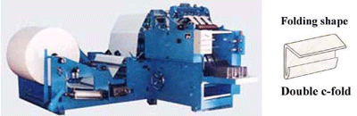 Jumbo Roll Diameter: (Dia.)1500mm Machine Speed: 150 packs/min. (10 sheets/pack) Operation Speed: 120 packs/min. (10 sheets/pack) Sheet Size: 210 x 210mm Folding and Packing Size: 55 x 105mm & 55 x 75mm Other size can be specified Material Ply: 2 or 3 plies Features: