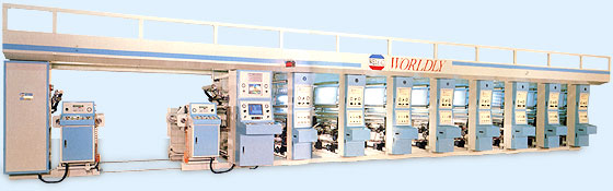 In order to meet diversified customers' packaging requirements, Worldly is concentrating on developing machines of high quality. Equipped with turret type double shaft unwinder and rewinder, web change and splicing can be automatically performed while operating in high speed. The press employs a dancing roller, low friction pneumatic cylinder, printing cylinder diameter setting device, and synchronized Man-Machine interface P.L.C. control system to provide accurate control of the web. This machine will reduce production costs by increasing productivity, and help your product to gain a competit