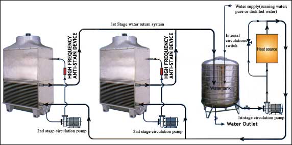 Yu Ting has developed a totally new enclosed cooling tower. This unit is specially designed to solve water stain and corrosion problems by keeping the first stage cooling water in an enclosed circuit. It saves considerable amounts of energy, improves efficiency, reduces maintenance costs and extends the machine service life. The unit is environmentally friendly, and allows industry and economies to progress simultaneously. In addition, the simplified structure is easier to maintain as well as install and dismantle. This also means it can be mass-produced for competitive pricing.