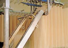 1. The first noodles-producing machine controlled by micro-computers in Taiwan. 2. Abling to adjust the thickness of the noodles easily from both Noodle sides to get any exact thickness you want. 3. Stainless Steel shelf cover keeps the outlook as new as always. 4. The operations between wheel sets are automatically controlled by electric frequency meter and electric eyes. 5. Capacity: Spring Noodle-324kg/h, Cooked(Oil) Noodle-612kg/h.