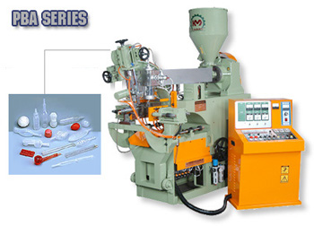 These machines are high cycle pneumatic blow-molding machines, suitable for popeycles & wide variety small size bottles. Specifications: PBA-210: Suitable for producing ice pops, toys. PBA-210A: Suitable for producing small size screw neck bottles. PBA-210B: Suitable for producing small size two-color bottles, toys.