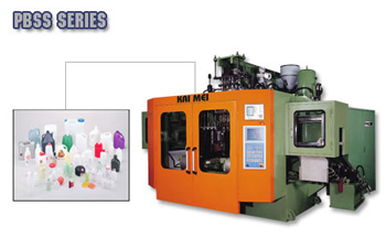 Double station machine, full automatically, suitable for producing high-production runs of medium size bottles, ex. Cosmetic bottles detergents, etc. Mold-platen moves parallelly with high stability and high efficiency.