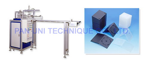 It is designed for sealing OPP, CPP and PP films with DVD, VCD and VHS cases. The applicable film thickness ranges from 0.05 to 0.14 m/m. Feeding the piles of injection-formed PP case onto the conveyer belts order by order and starting the switch can seal the film rolls with PP cases automatically. The finished products output from the discharging conveyer belt. The operators only need to put the materials while feeding and get the finished products while discharging.