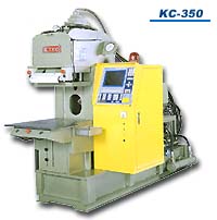 KC-DM Series can be supplied with a shuttle table or rotary table. The above will allow the manufacturer to load and unload coresorinserts while the molding machines is automatically performing another molding process. When the molding cycle is completed the mold automatically opens, the operator engages the two palm buttons, the shuttle table moves left or right or the rotary table indexes, the mold CL and the operator releases the palm buttons and performs their unloading and loading function.
