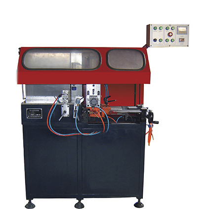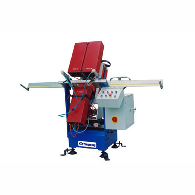 1.The machine features pneumatic drive, linear and steady feeding. 2.The movable saw head(right saw head) is driven by a motor, features easy operation. 3.The cutter is alloy saw plate with high precision and long service life. 4.The machine is used for aluminum and PVC profile cutting processing adjusting to 45 degree to 90 degree. 5.The machine can be used to cut mullion also. 6.It features wide cutting range, high productivity and is suit for batch production.
