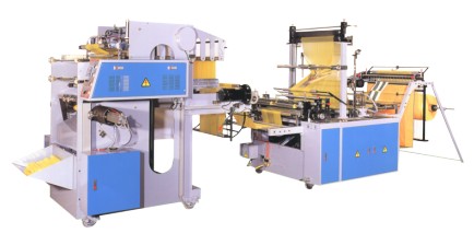 1. Automatic electronic control. Use pluging type IC circuit for easy replacing. 2. Electromagnetic clutch and brake keep bags cutting and sealing accurately. 3. Germany made high-sensitivity photo cell device which can catch printing mark correctly. When the print is in inaccurate position, the machine will stop automatically. 4. It saves labors, time and is profitable in mass production. 5. The folding device for C type bag. There is no gap in the gusset point. 6. This machine can produce table sheet, garbage bag and c type bag by perforating. 7. Adopting automatic changing c