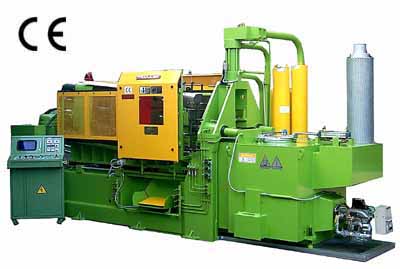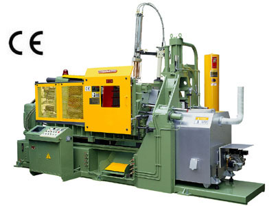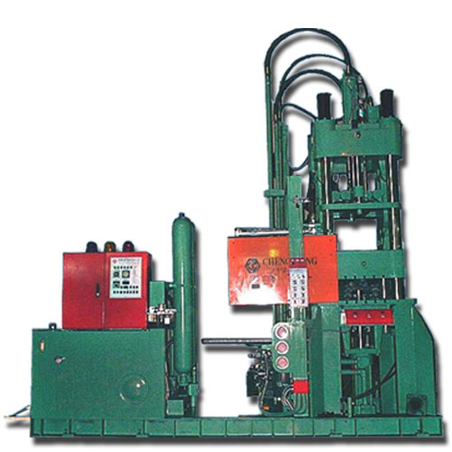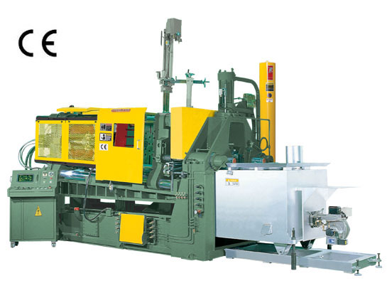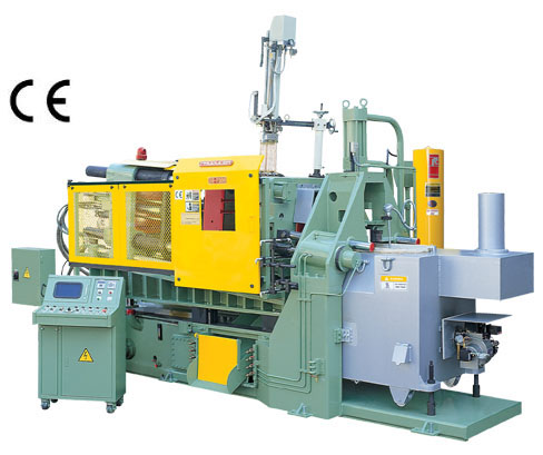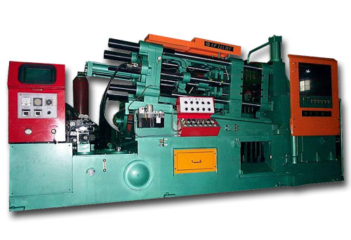 Fully automatic oil hydraulic die casting machine, allowing one man to control the operation of multiple units for saving labor cost. Mold opening and closing allow three options at Fast, Medium and Slow for operation as desired. Fast injection speed due to power jet to provide die casting conditions with finished products giving excellent filling rate, and working conditions may be changed as desired depending on the nature of the metal mold. Highly precision machined, this machine allows precision manufacturing with each and all parts strictly of top selection, all properly treated for