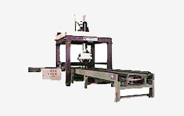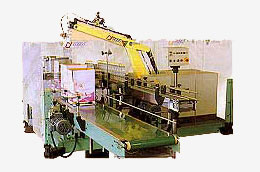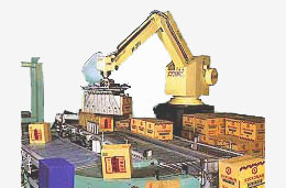 1. Fully electronic absolute position detection system allows automatic operation without zero return. 2. The control system makes not only PTP positioning but also linear positioning and circular control possible. The various softwars for palletizing patterns are available. 3. The robot permits simultaneous palletizing on two different lines of cases with pallet magazine. 4. The interactive teach pendant allows simple programming and operating the robot. 5. The memu is displayed in English. When exceptional situation occurs, it would be shown by operation check.