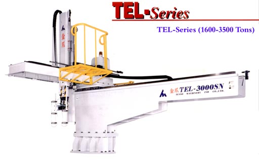 Ideal for fast and easy to change application *When production mold is changing, the only operation for the Robot is releasing screw and swinging main body out. Then turn it back to vertical position after mold changed and lock screw again. Easy to adjust direction for releasing object *To change direction of release object, the only operation is taking 17mm wrench to un-lock and lock again of screw of stroke. Various angle from 50-90 degree.