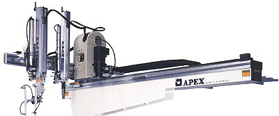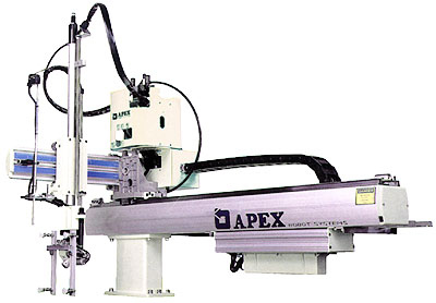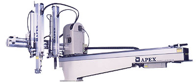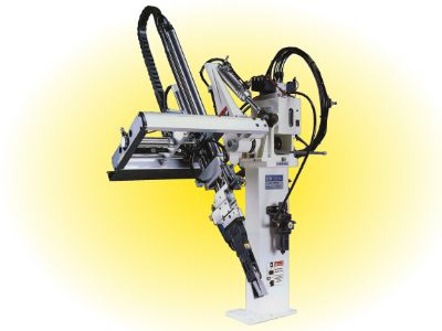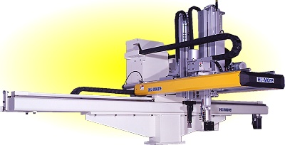 The traverse stroke is driven by an imported, high performance, frequency change brake motor for variable speed adjustment, and the brake can be micrometrically adjusted to meet mold variations. The traverse stroke of the product arm is controlled by an encoder, providing up to nine points of product release. The rack and rail on the traverse stroke are constructed of one piece, offering extreme stability and rigidity. The sprue releasing position for the sprue arm can be as desired on the traverse stroke. Exclusive anti-braking design. The brake unlock is performed instantly in the event