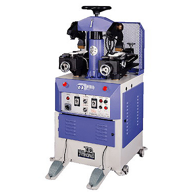 Exquisite design of the new generation last edge ironing machine integrates toe and heel bands and bottom mold in one piece. Sharp and solid last edge produced by this machine helps later operation of roughing and gluing. It is perfectly suitable for shaping the edges of soccer and other shoes.