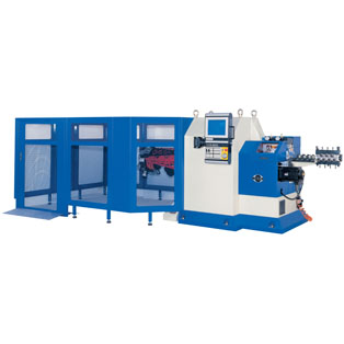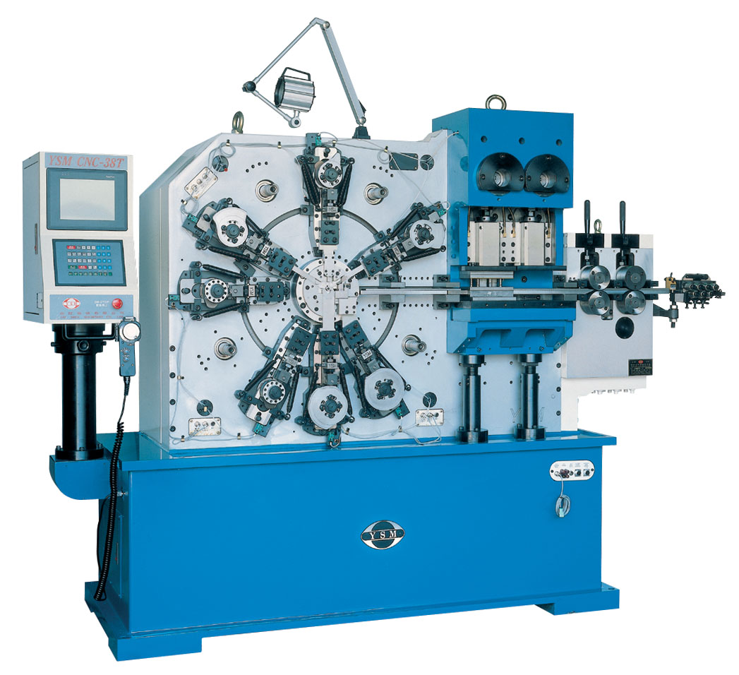 YSM-CNC-38T combines with machines' good points and characteristics. It is controled by three axis. Feeding Axis press and forming are controled by servo. Processing time can change. Length of wire feeding is unlimited.