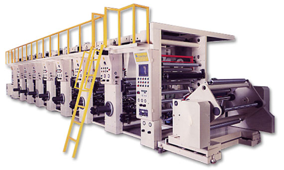 Machine, unwinder and rewinder are driven by AC/DC motor and controlled synchronously. For precise control, machine is equipped with edge position controller, tension controller and tension indicator. Cylinder preset device, optical sensor for auto register, and web inspection monitor system are optional. Shaftless printing cylinder is set either by tapered cone, air chuck or by mandrel, tapered cone.