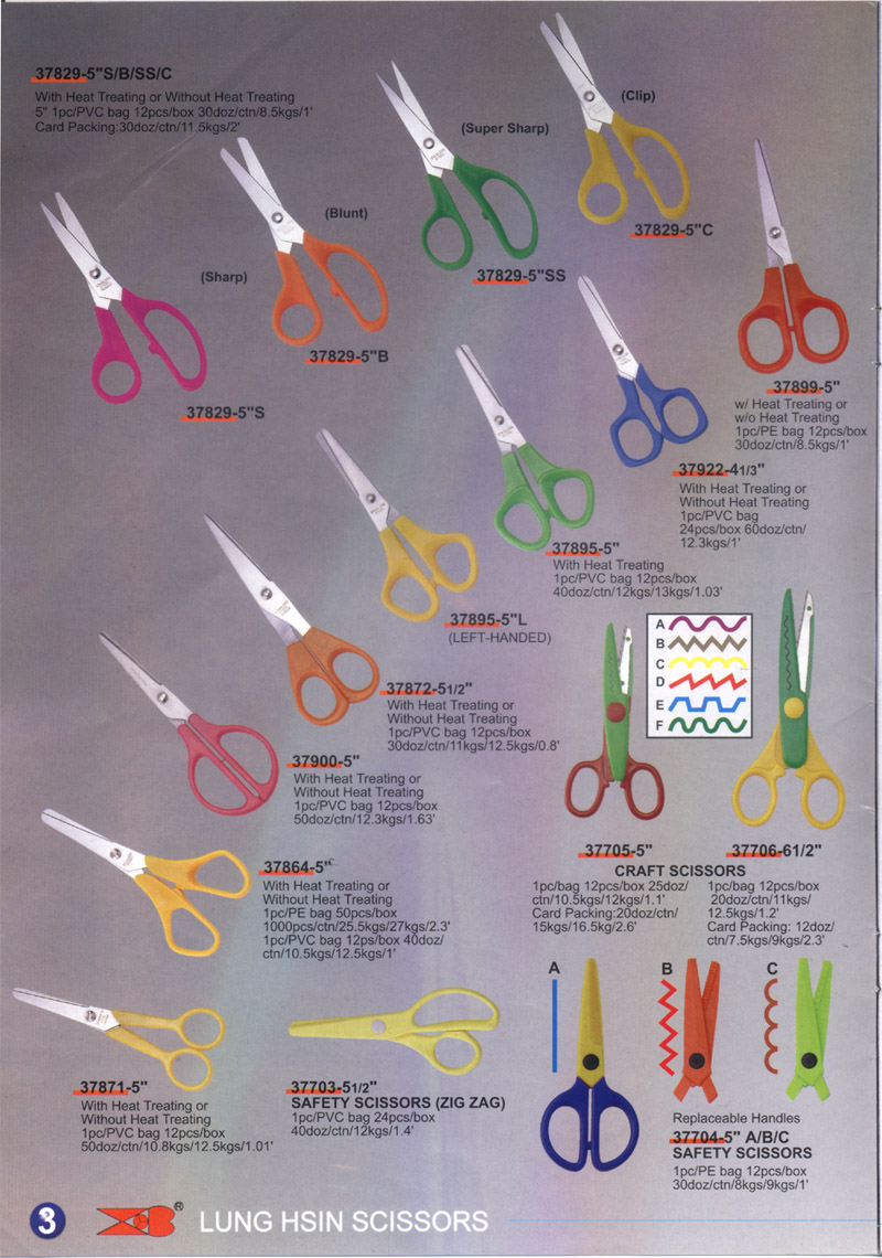 | Establised in 1976, We are the manufacturs ¡® exportrs specialisd in produing school scisors, school scisors, paper scisors, statioery scisors, plastic scisors in Taiwan since 1976. We exporter our scisors to the many county. We producs the scisors our 72,000 sq ft factoriy and the QC spacie. Please let know your requires, we striveis for perfectior and puts your needs fister. |