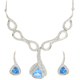 | necklace set with earrings in silver rodium finish with cubic zircon, turmuline pink and Turqouise blue ad stone cdjewels DOT net Offers classic and traditional, jewelry, jewellery. |