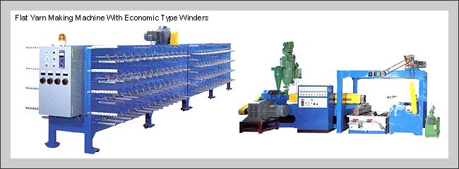 | woven bag plant making machine, extrusion laminator/coating machine, air bubble making machine, flat yarn making machine with economic type winders. |