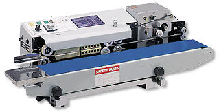 LIGHT DUTY HORIZONTAL SEALING MACHINE The smallest model performs horizontal sealing operation. Fully gear drive assures long service life and superior sealing quality. Combines bag sealing,knurling and date coding (opional) operations. IC controlled circuit provides convenient maintenance. Variable conveyor speed. Accommodates both teflon and steel sealing bands for sealing all types of plastics polycell,and aluminum foil bags. Conveyor can be horizontally and vertically adjusted to meet various bag sizes. The cooling fan ensures maximum tightness of seal. Comprehensive safety guards. Ideal for sealing dry powder,solid goods,hardware kits,stationery,electronic parts,toys,bread and medical instruments...etc. Bag length range from 4 to 20cm. For bag length over 30cm,an additional Conveyor is available. Stainless steel machine frame is available. |