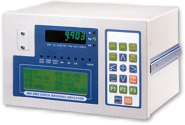 * For Check Weighing (Weight Checker) in Production Line. * 100 coded check weighing specifications: OK, HI,LO, Material Code, Accept Count, Total Count, and Accumulated Value. * Fully Digital Calibration * 1/10,000 displayed, 96,000 internal resolution * A/D Conversion rate approx. 70 times/ Sec. * 6 Weighing Check Modes: (1). Semi-Automated System/ Weigh-Conveyer Stop; (2). Semi-Automated System/ Weigh-Conveyer Run; (3). Fully-Automated System/ Weigh-Conveyer Stop; (4). Fully-Automated System/ Weigh-Conveyer Run; (5). Passive Check Wiegher; (6). Simple Check Weigher. * 240 x 64 dot display array with EL back light * Various Check weighing Functions: Placement timer, Judgment Sampling Rate, HI/OK/LO Output Pause Time, HI/OK/LO Output Length Time, Gravity Compensation. * Standard: 20mA Serial Current Loop Output * Option: * OP-01. I/O Interface * OP-02. Serial Interface RS-232 or RS-422/485 * OP-03. Printer Interface (Include Date and Time) * OP-04. Parallel BCD Output