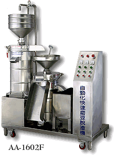 Patent No 86719 ZL 96 2 03899.7 * Suitable for whole plant equipment of soybean milk, beancurd, dried beancurd and bean pudding factory. * Convenient installation with our occupying space. * Fast speed, high productivity, high concentration, Automatic, soybean grinding and residue discharge soybean saving, cost reducing. * Made by stainless steel and aluminum alloy material, Good looking and rust proof. * Meet sanitary standard, Adopt sanitary pump and stainless steel piping. Easy washing.