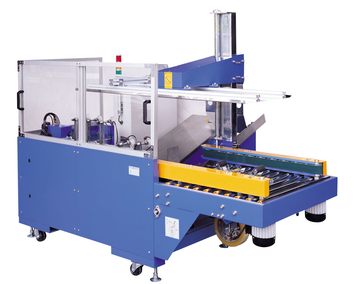 Model :CHS-6701 Power :1 phase, 220V Carton size: L =250~500MM, W =170~410MM, H =90~500MM Cardboard Temporary stock :50/60 PCS capability: 102 CTN/MIN (depends on carton's size and material) Machine size :L =2210MM W =1650MM H =1700MM