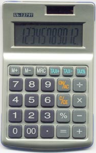 1. 12-digit BIG display dual power calculator. 2. Tax calculation. 3. Gold-color sprayed upper case. 4. Comfortable and easy-operation large keyboards. 5. Dimension: 116 x 73 x 7mm