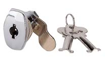 MS 303 Mini Cam Latch, flap-type (keys attached) Material :Zinc Alloy Finish : Electroplated with chrome, Bright. Application : Control panel, cabinet door plate.